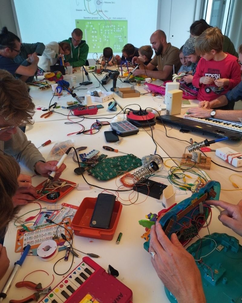 Et si on donnait une deuxième vie à vos jouets ? À travers la pratique du circuit bending, La Bricool propose une initiation à l’électronique et à l’éveil musical. Un atelier ludique pour les petit·es et grand·es bricoleur·euses, où il est permis d’ouvrir des jouets électroniques afin d’en révéler des sonorités insoupçonnées.